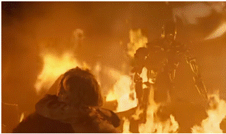 In one of "The Terminator" (1984) most iconic scenes, after a tanker truck explodes, the Terminator is reduced to its metal endoskeleton and emerges from the flames to continue its pursuit of Sarah Connor.